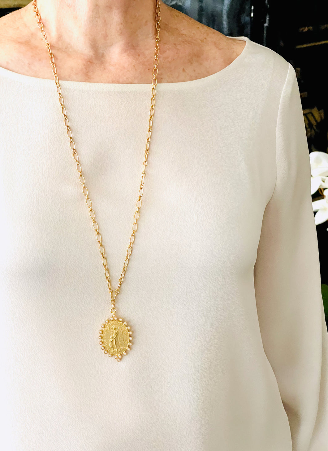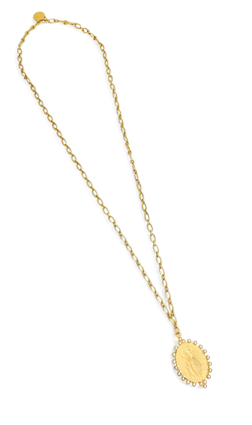 Angel Alas 🪽 de la Guarda Medallón✨”Ángel de mi guarda, dulce compañía, no me desampares ni de noche ni de día” ✨EUGENIA Chain LONG Necklace 30”✨