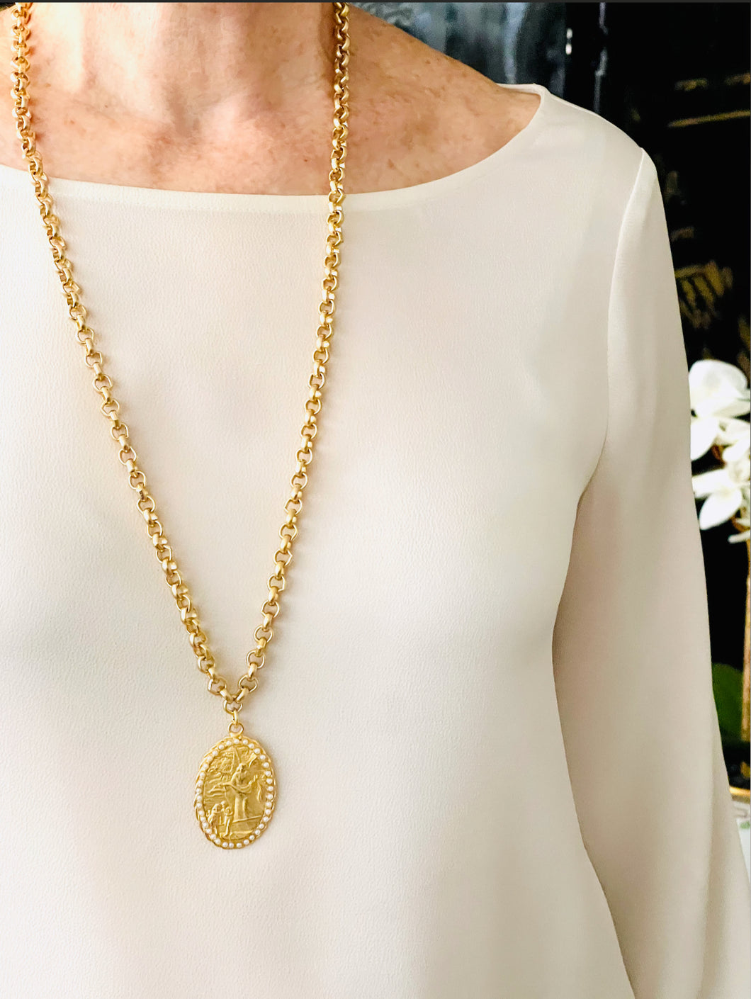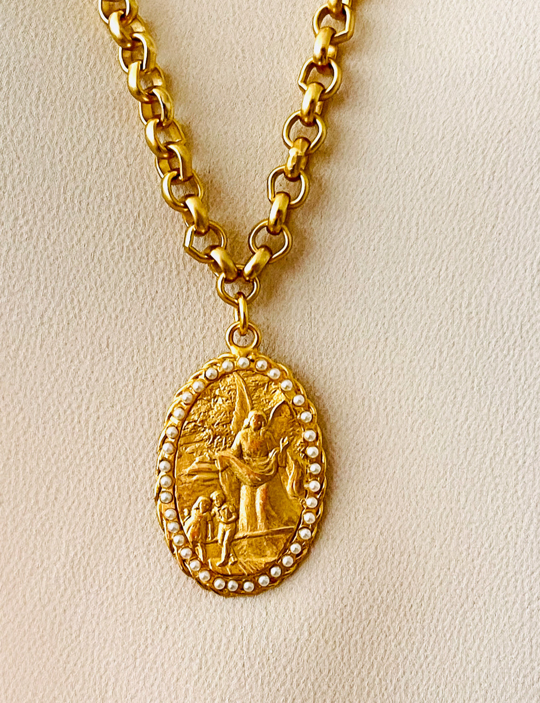 Angel de la GUARDA Medallón ✨ “Ángel de mi guarda, dulce compañía, no me desampares ni de noche ni de día” ✨EUGENIA Chain LONG Necklace 30”✨