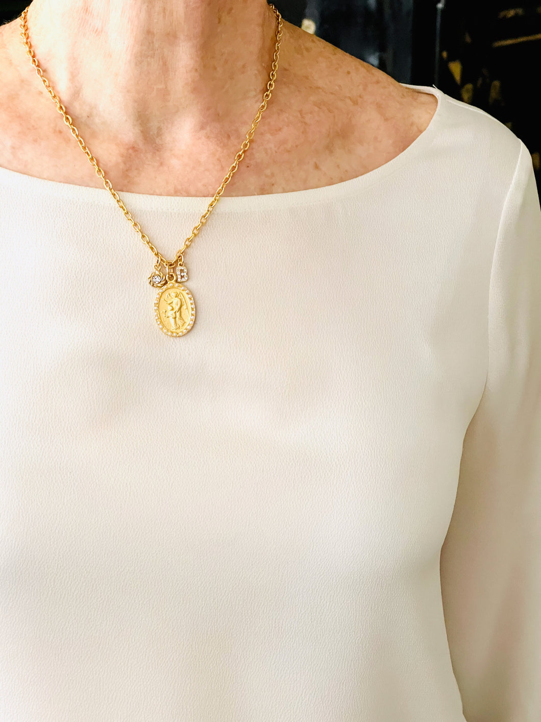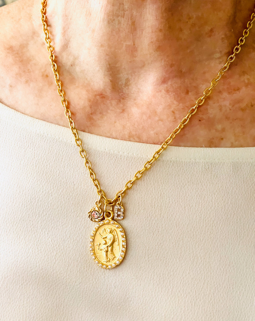 Angel Alas 🪽 de la Guarda Pearl Charm with Crystal Charm✨ CAMILA Chain 18”-20”✨ Choose Initial ⬇️