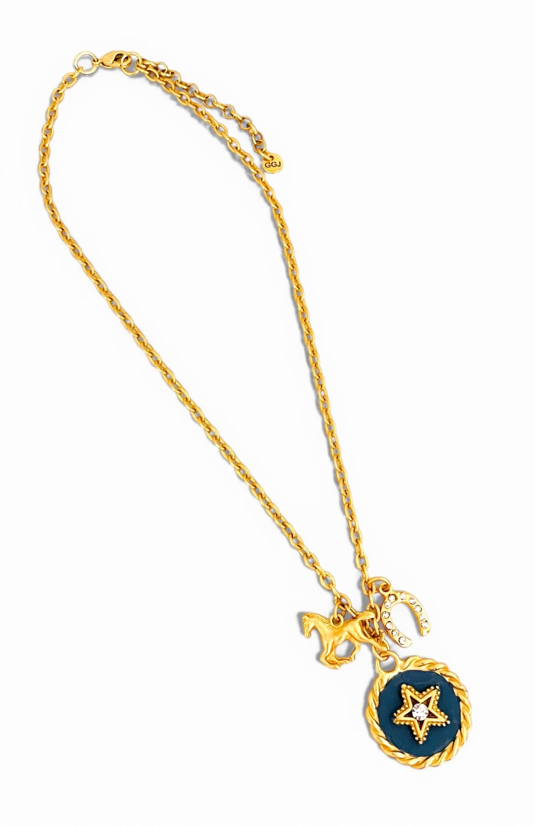 Star with Cristal & BlueGray Hand Painted Enamel 🎨 with Horse & HorseShoe ✨Short Necklace on Camila Chain