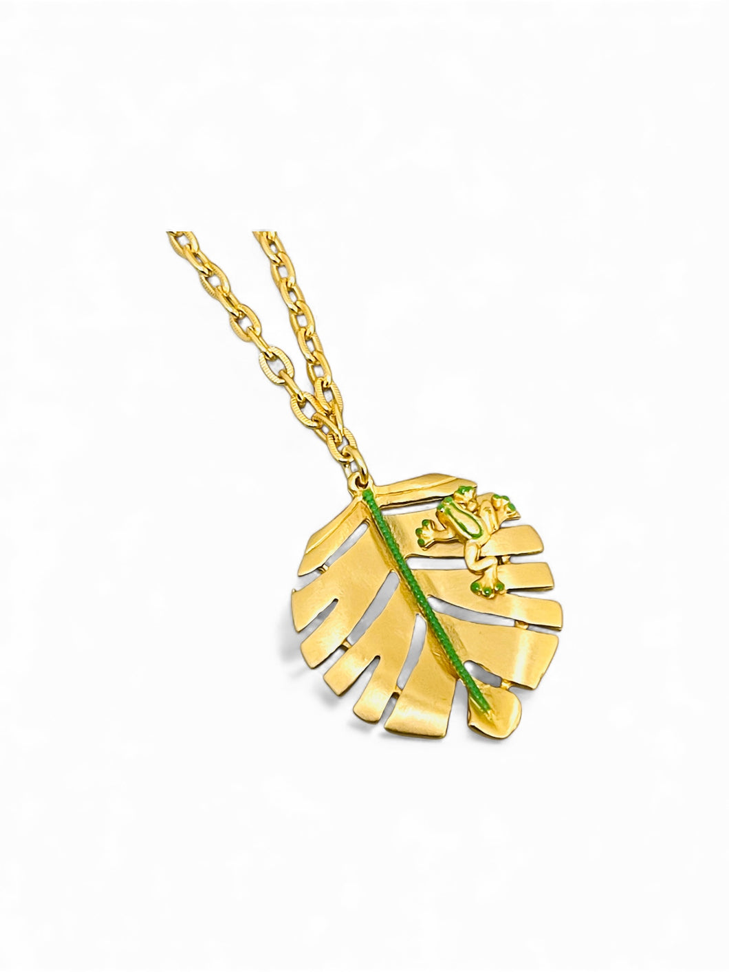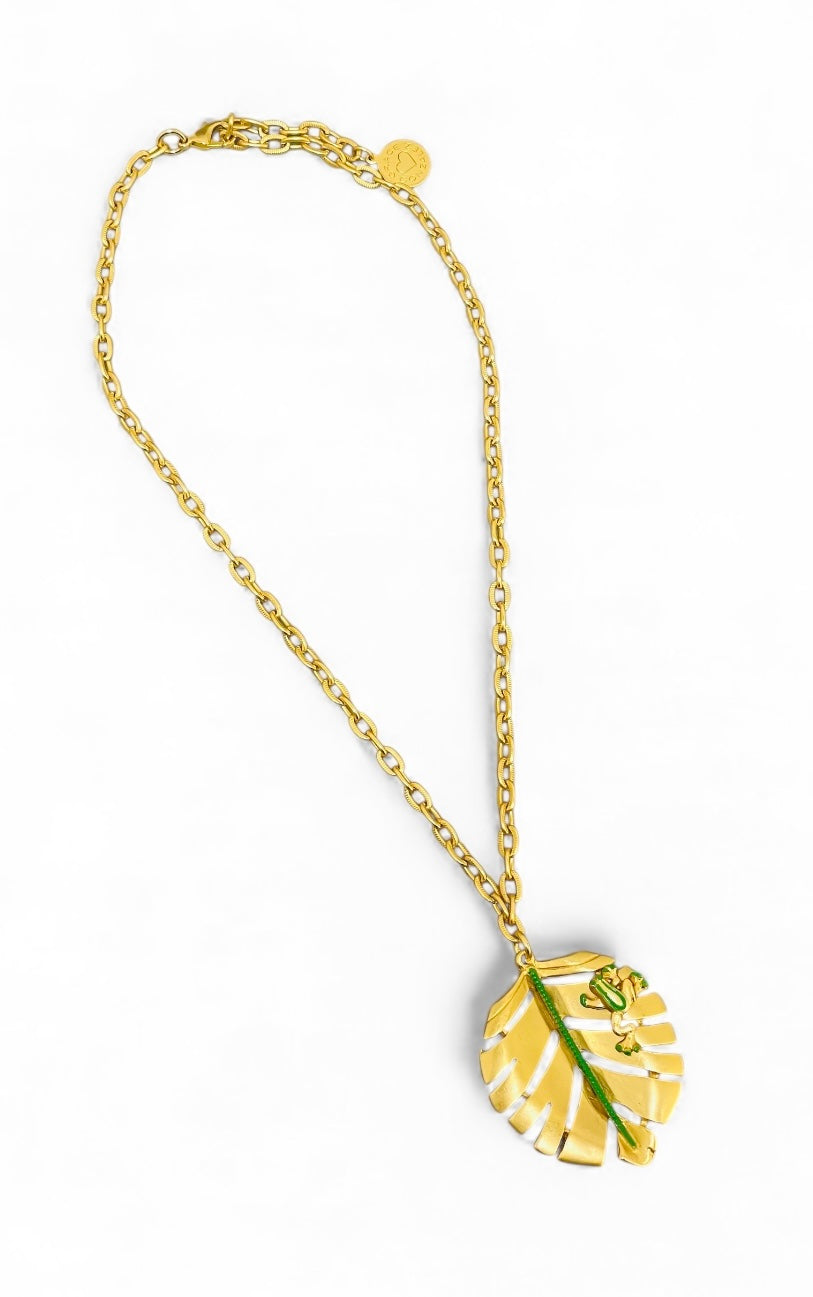 Collar Hoja 🍃 Coqui 🐸 Short Necklace CAROLA Chain 19”-22” with Enamel Detail color 🎨