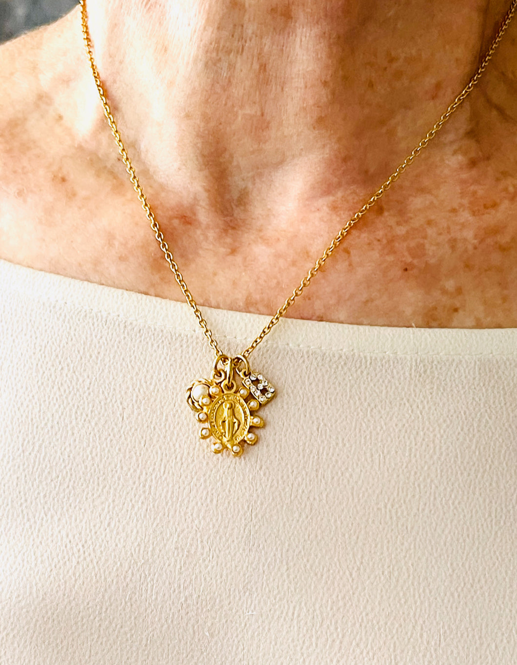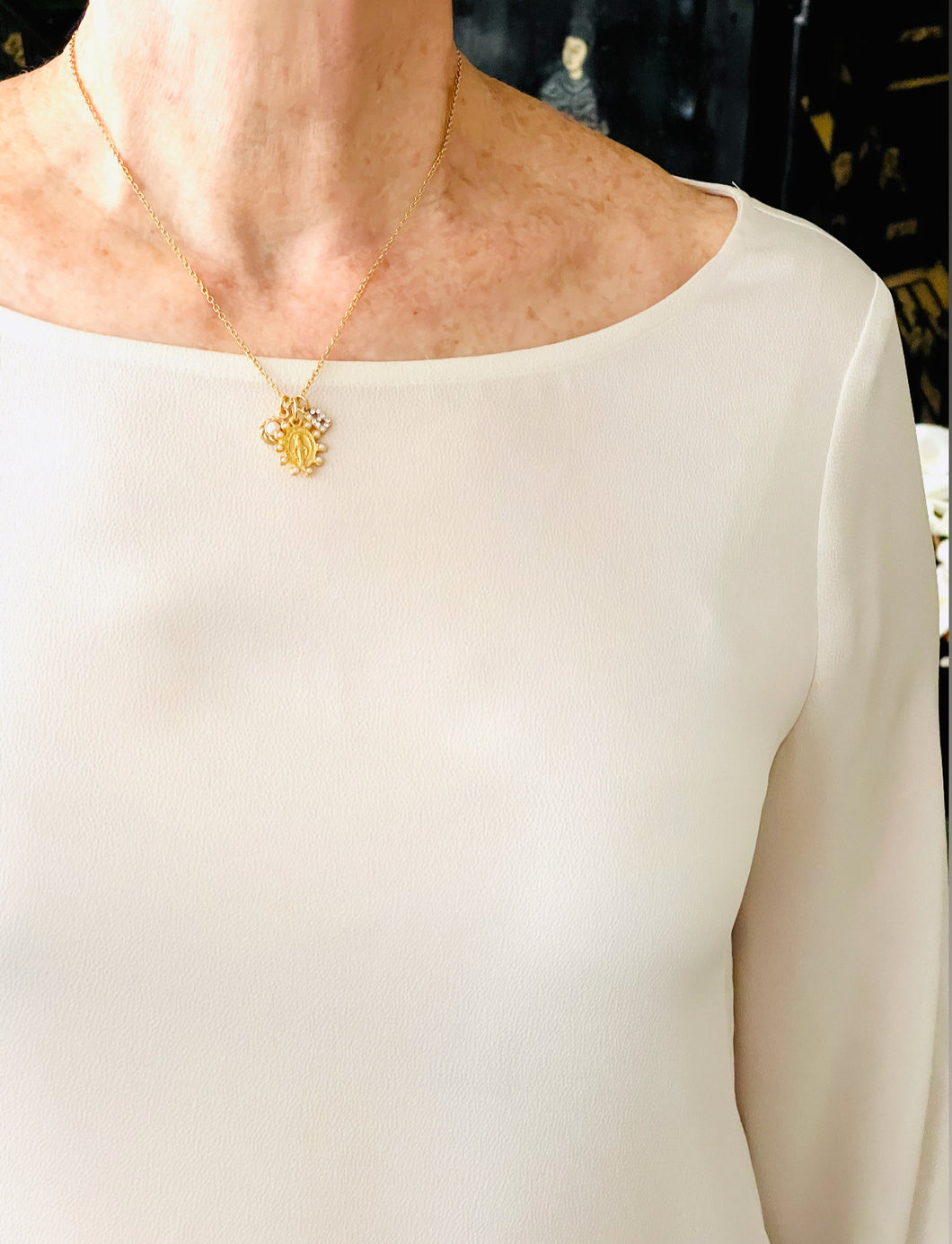 Milagrosa Mini Oval Pearl Charm with Pearl Charm on Thin MIA Chain 16” Adj to 18” ✨ Choose Initial ⬇️