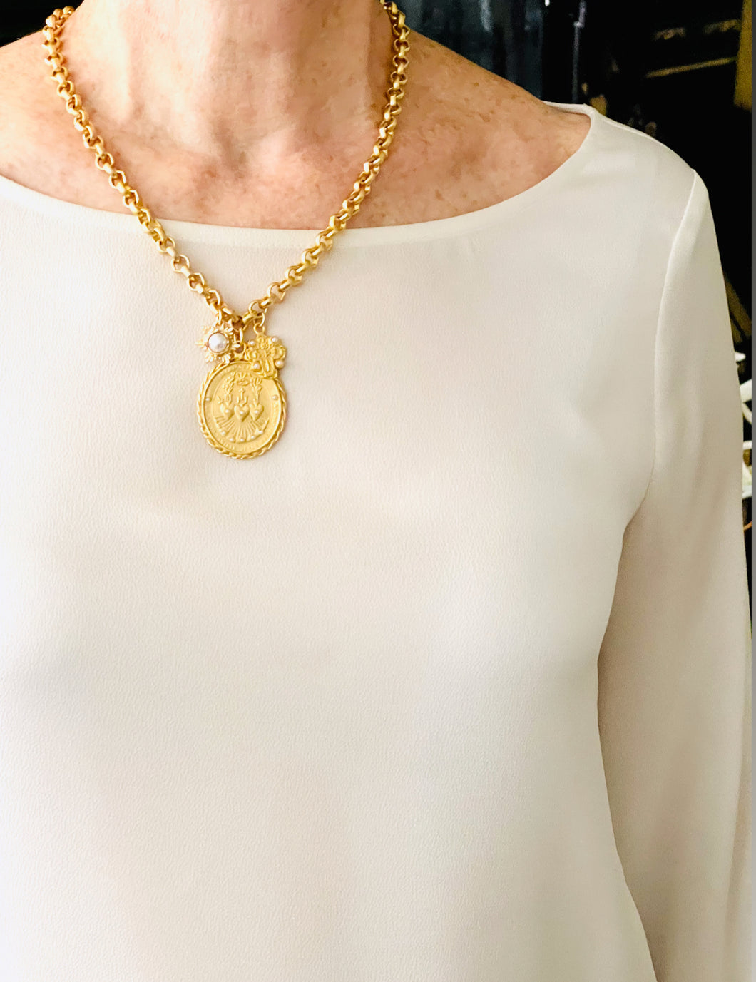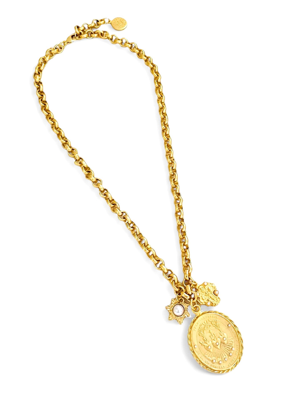 NEW! SAGRADA FAMILIA 💛 ESCAPULARIO✨ with Cross & Pearl Charms ✨ ESTEFANIA Link Chain Short Necklace 20”-22”