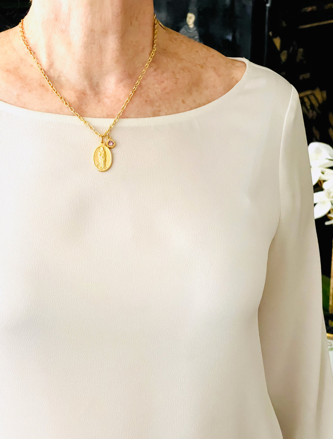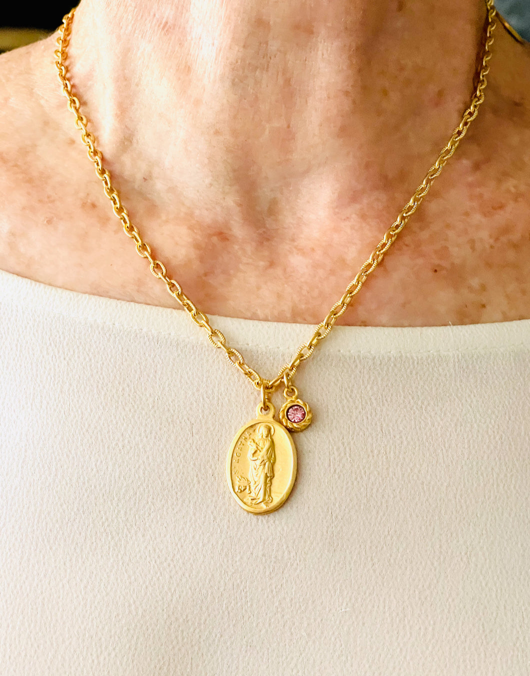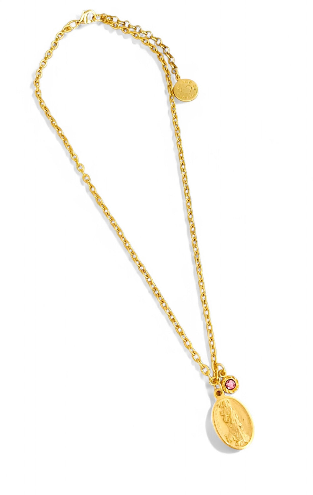 NEW!!! Santa Agatha ✨ Patron Saint of Breast Cancer 💗 Medium Oval Charm with Rose Crystal ✨CAMILA Chain✨Short Necklace 18”-20”✨