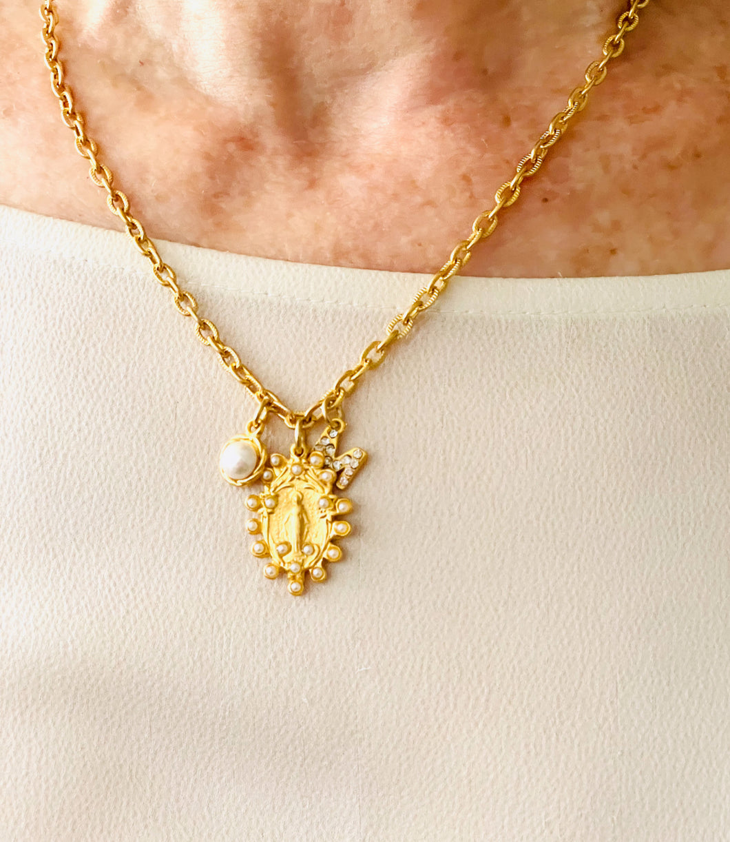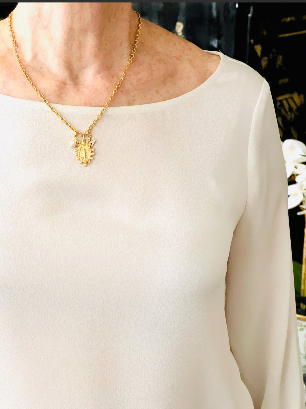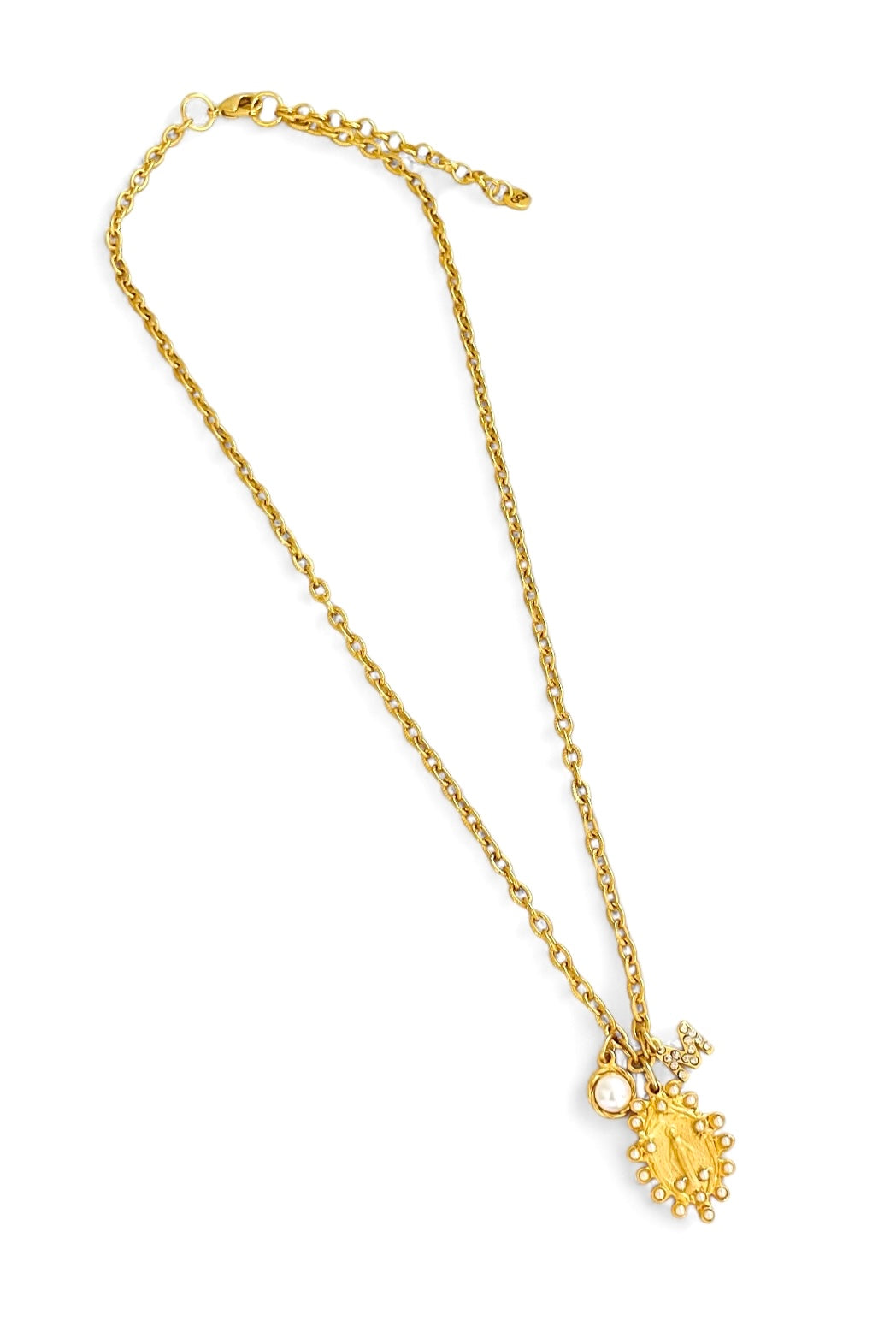 Milagrosa Small Oval Pearl Charm with Pearl Charm on CAMILA Chain 16” Adj to 18” ✨ Choose Initial ⬇️