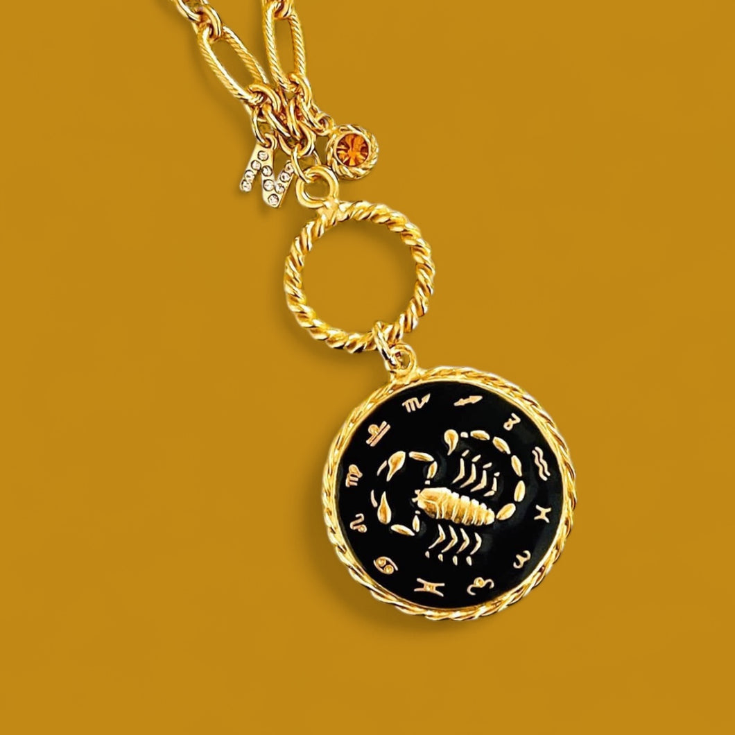SCORPIO ♏️ Enamel Medallion with Birthstone & Initial with Regina Chain 18” Adj to 20” ✨ Choose Birthstone & Pave Initial ⬇️