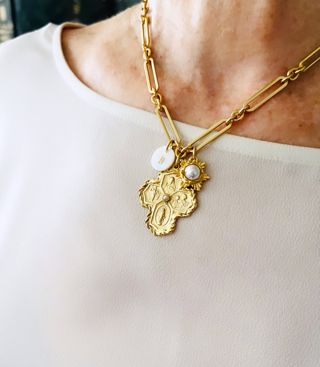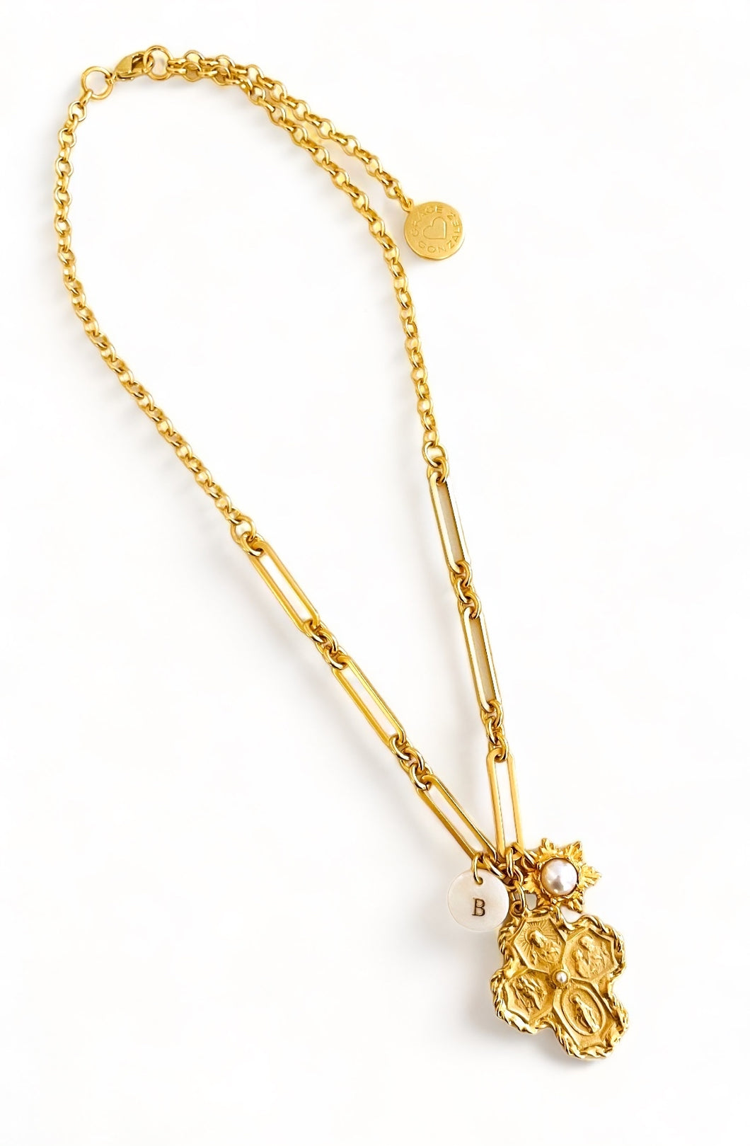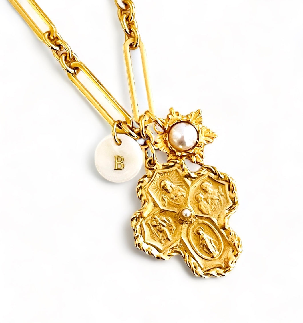 ESPÍRITU SANTO 4 Point Cross with SOFIA Chain✨ Short Necklace 18-20” Choose Initial Below ⬇️