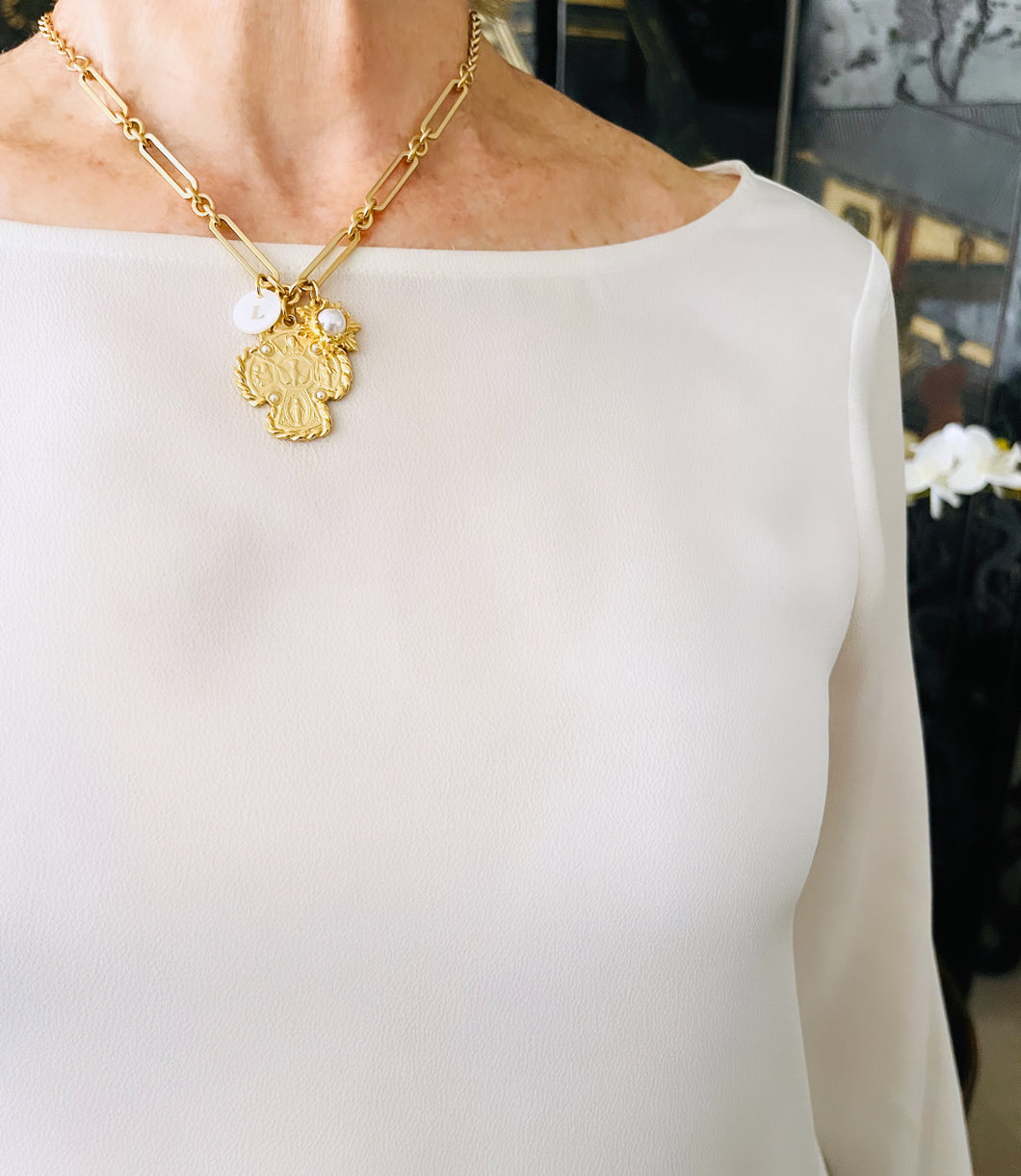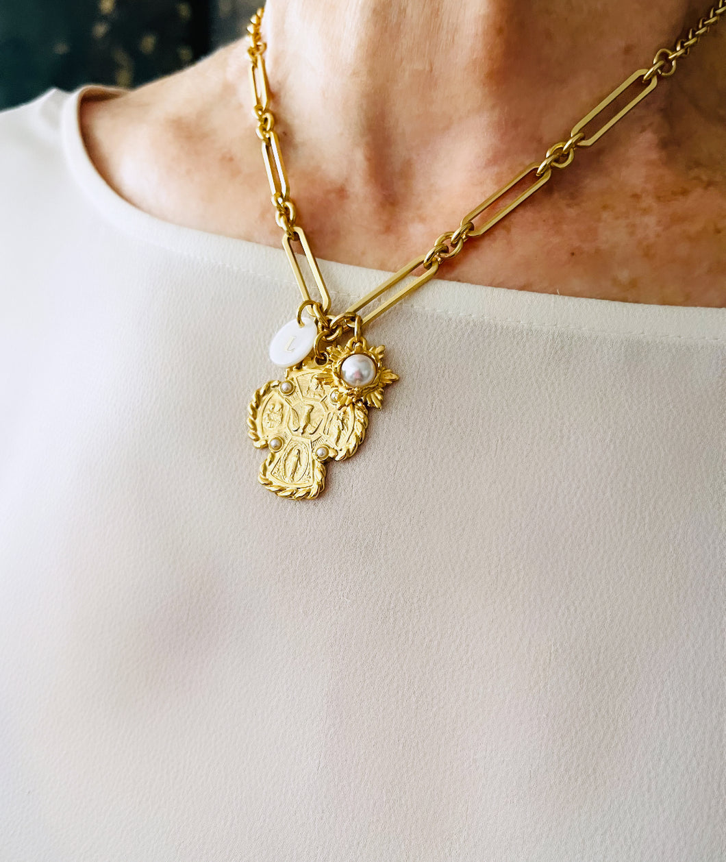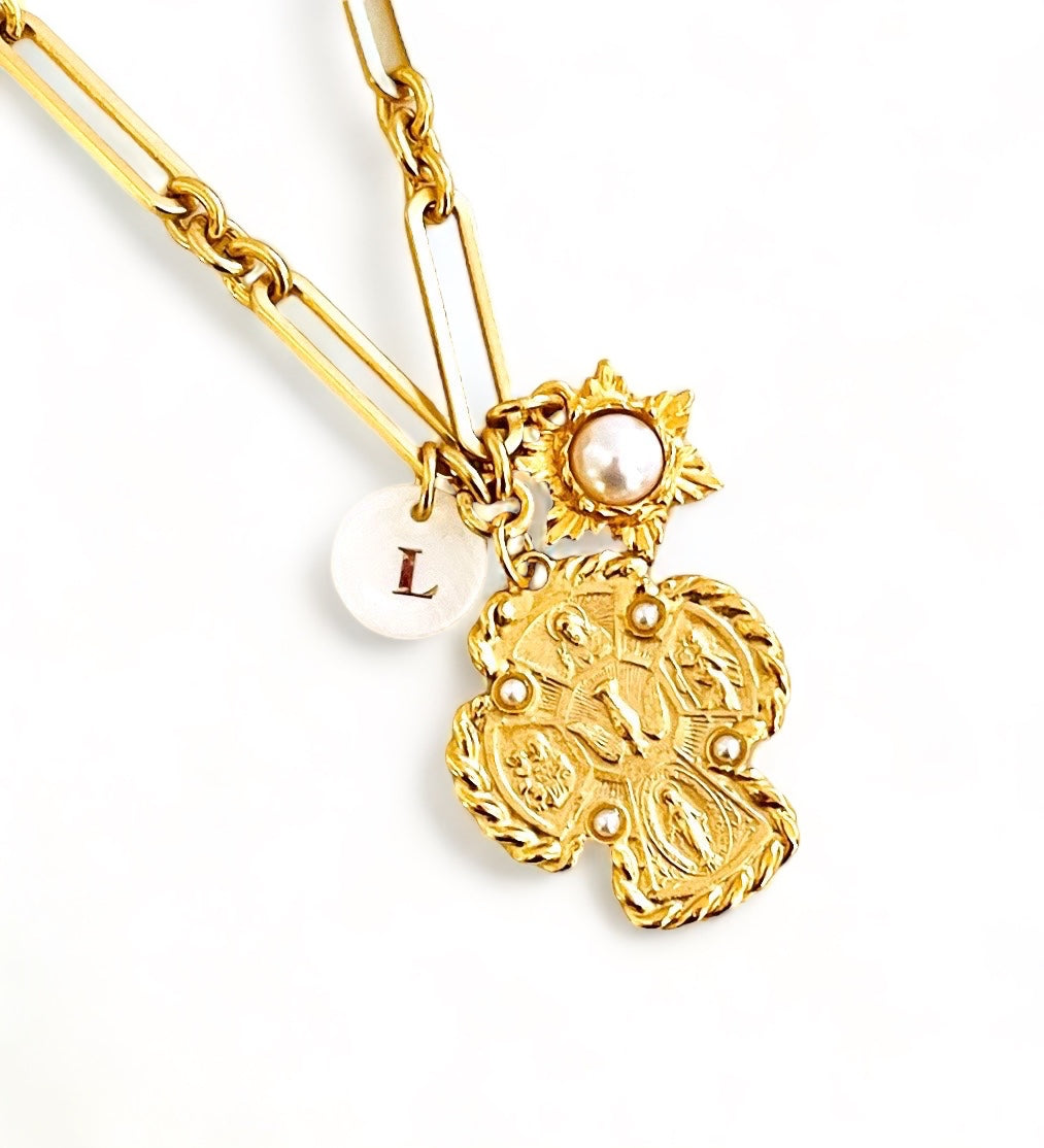 ESPÍRITU SANTO Cross with SOFIA Chain✨ Short Necklace 18-20” Choose Initial Below ⬇️